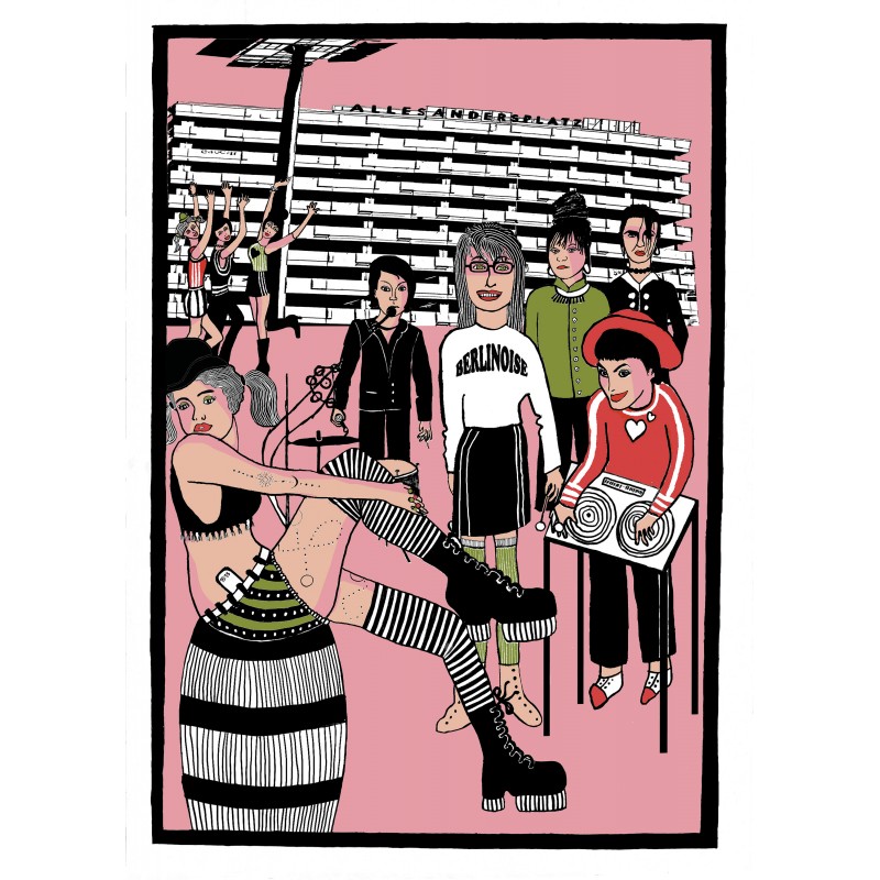 „Berlin war für mich schon immer eine Stadt der tollen Frauen“, sagt Danielle de Picciotto. Und wenn es eine Frau gibt, die für diese Stadt steht, dann ist es Marlene Dietrich. In der neuen Siebdruckedition vom tipBerlin taucht die legendäre Diva in junger Aufmachung zugleich als inspirierender Geist, Mythos und Patin der toughen Berlinerinnen auf. „Marlene und ihre Freundinnen“ heißt Danielle de Picciottos Siebdruck. Vor der symbolischen Kulisse einer sich stetig verändernden Umgebung – Allesandersplatz – stehen Françoise Cactus, Käthe Kruse, Gudrun Gut, Christiane Rösinger und Maruscha, die als Musikerinnen, Künstlerinnen, Labelbetreiberinnen, DJs, Autorinnen und in vielen weiteren Rollen berühmt und einflussreich geworden sind. Danielle de Picciottos Werk ist nicht nur eine Würdigung ihres Schaffens, es ist auch eine Liebeserklärung an die Berliner Frauen.